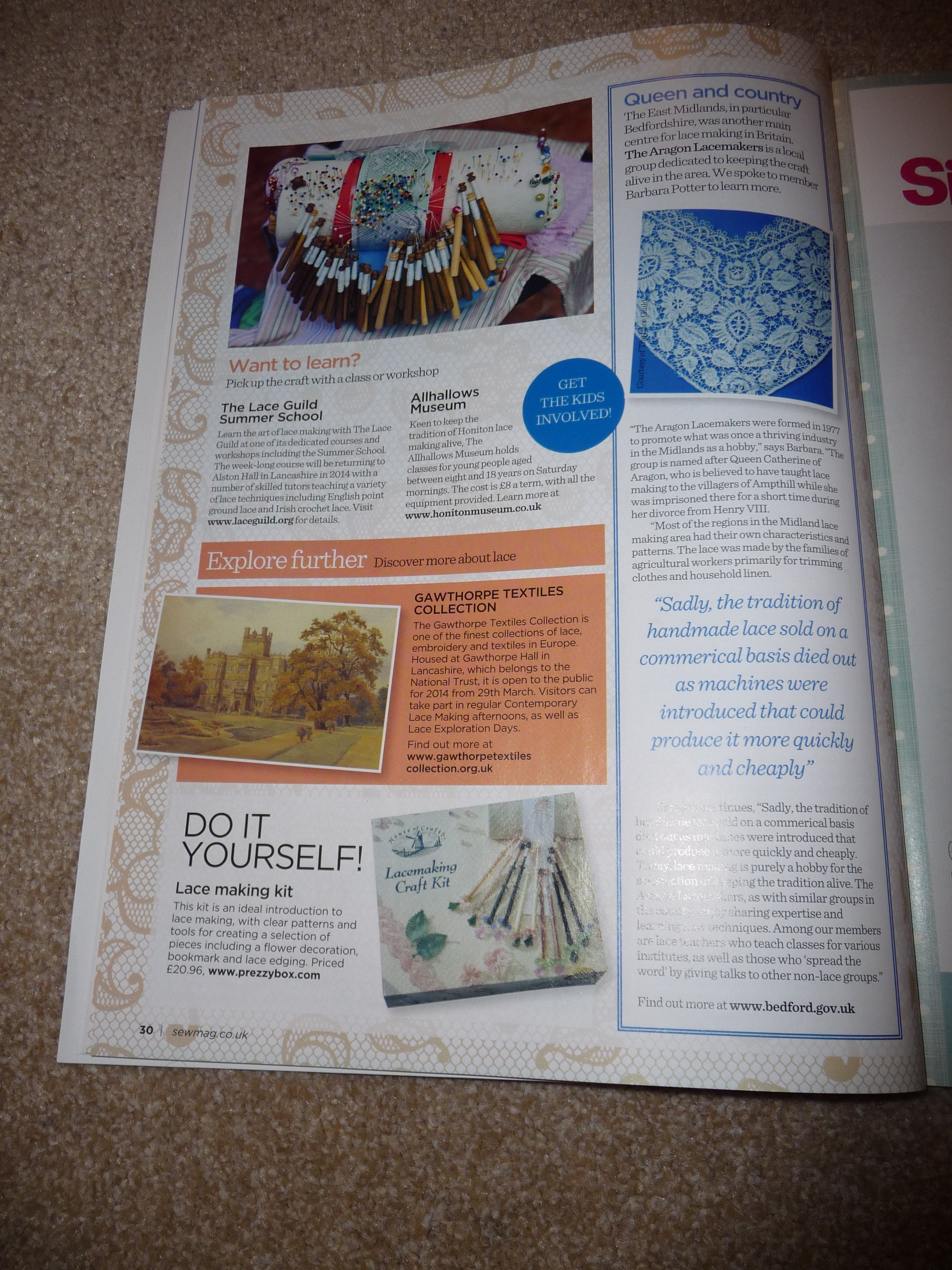 It shows how busy I’ve been recently that I’ve only just got round to reading last months Sew magazine (the February 2014 issue), and it was great to see an article about lace making.