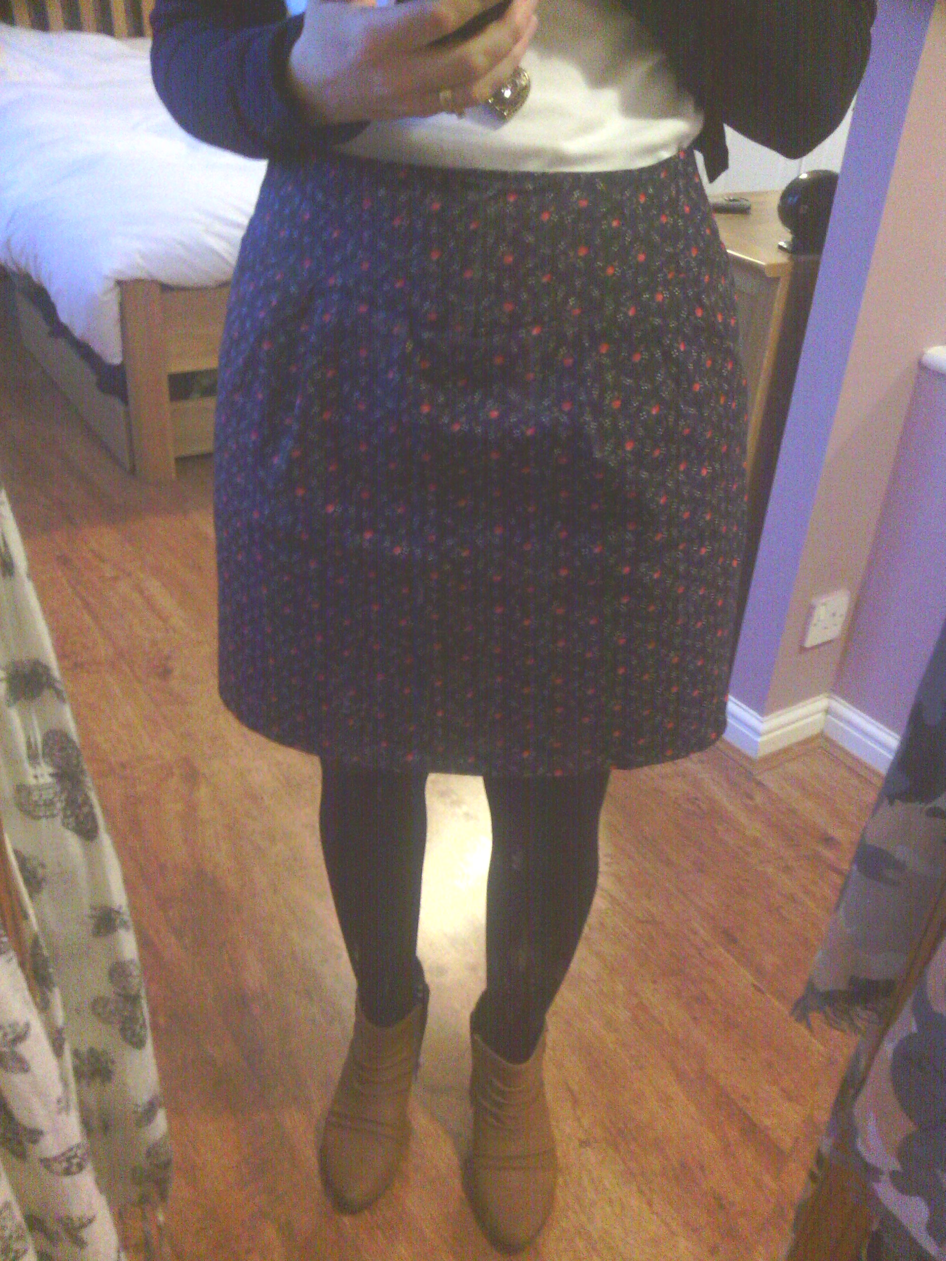 - Clothkits skirt (let’s not go there- I was bought this as a kit a few years ago, took far too many attempts to get the lining and waist facings right and then it was way too big, so I’ve adjusted it and it’s wearable… just. There are no pictures, it’s better that way. I was just glad to get it out of my UFO pile)