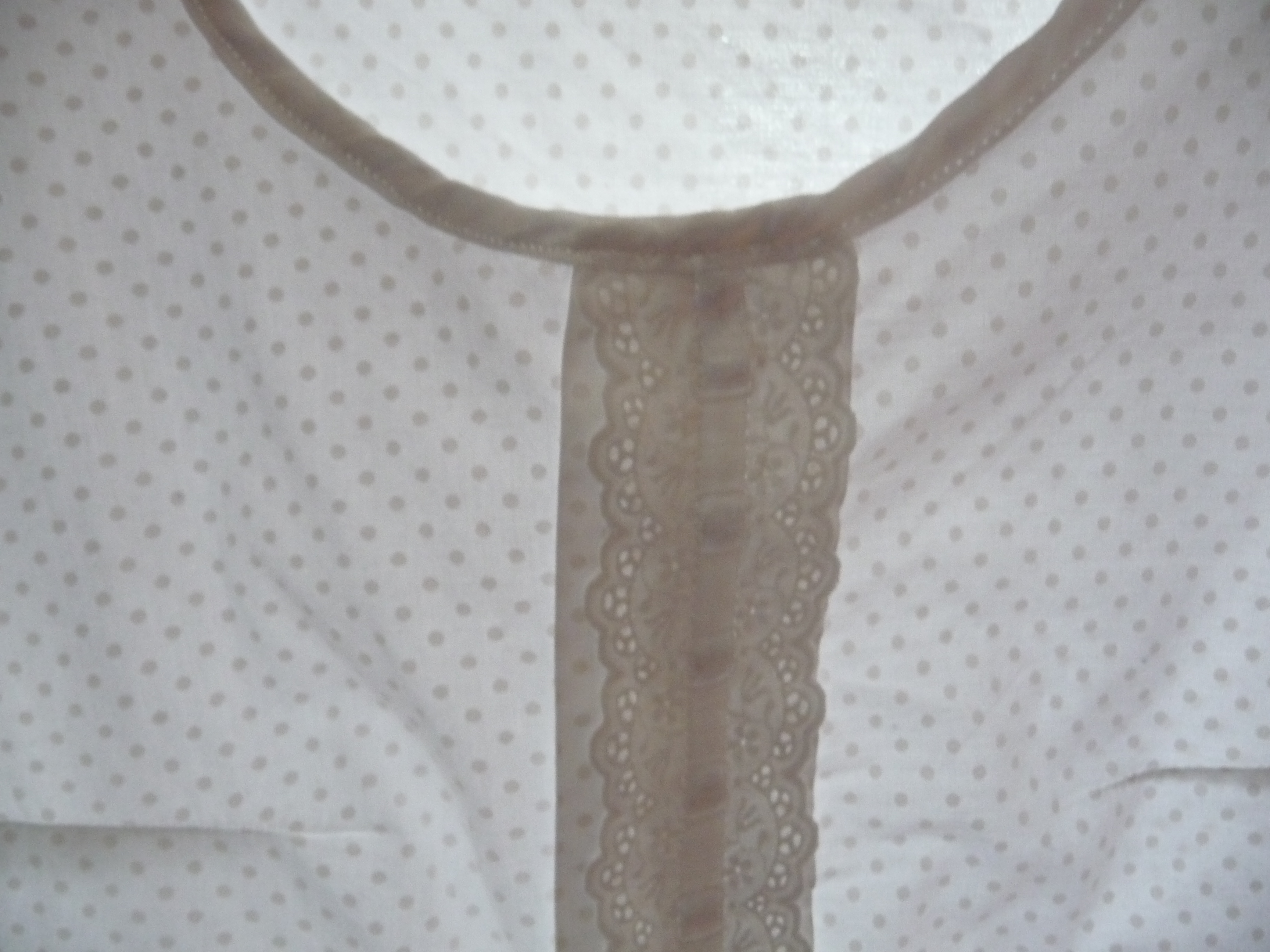 Version 1- my first ever top! Version 2- cap sleeves! Version 3- Ah, I love this top! Here’s a close up of the spots and Broderie Anglais trimming: