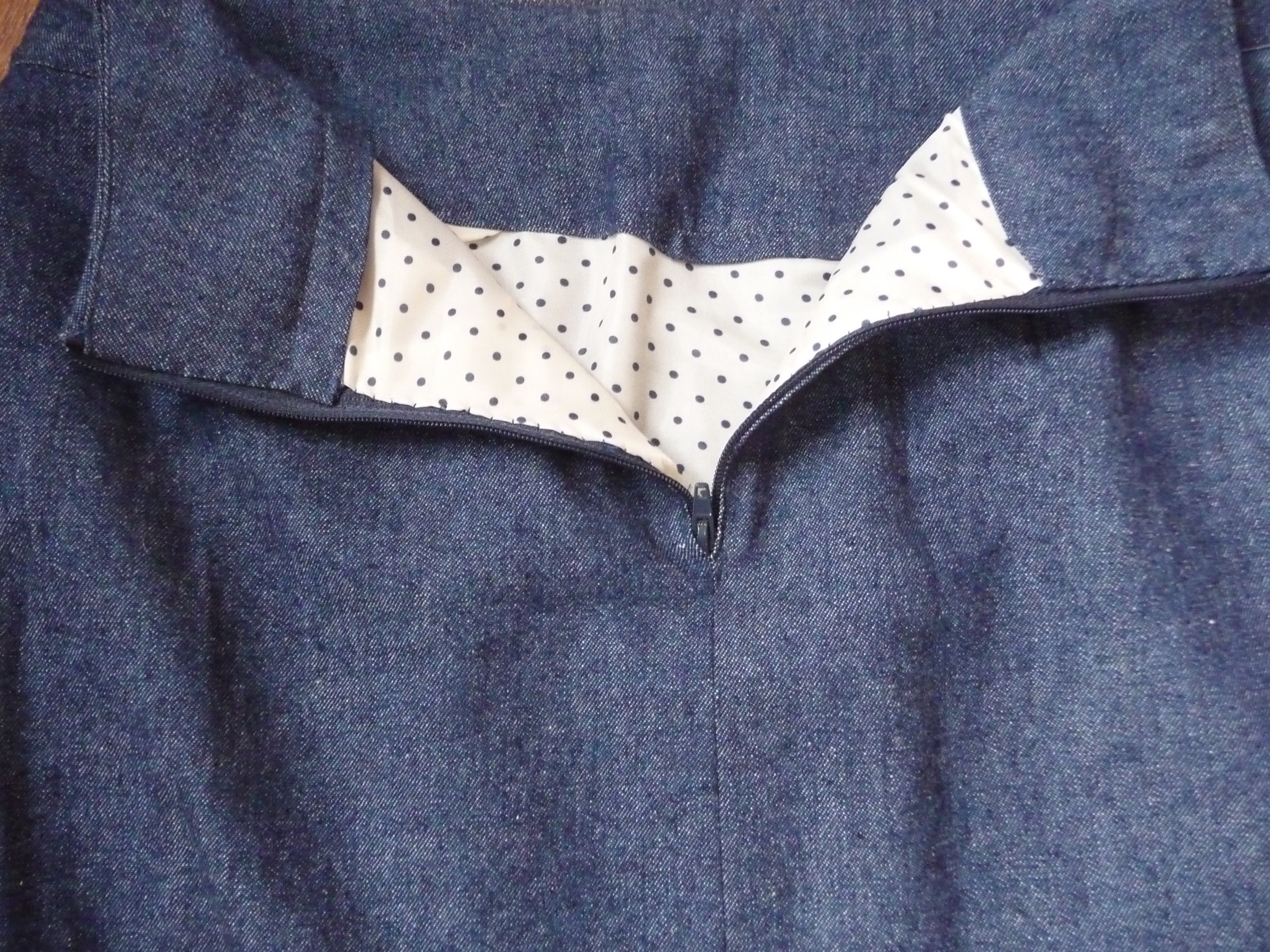 But I did cobble together a lining which I was pleased about. What I really wanted was a denim version though, so having practised on the patterned fabric, I was a bit more comfortable with the next version, but still ended up making it twice as I had a total blonde moment and put the zip in wrong and messed up the lining. Fool! But I learnt from my mistakes and all was well in the end: