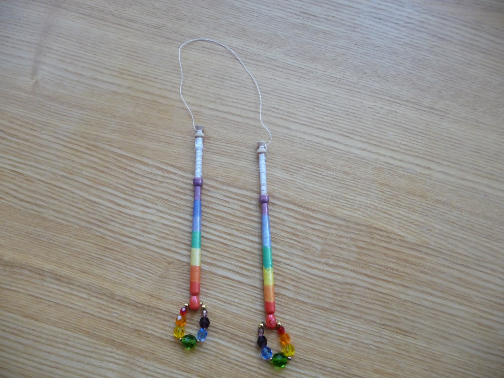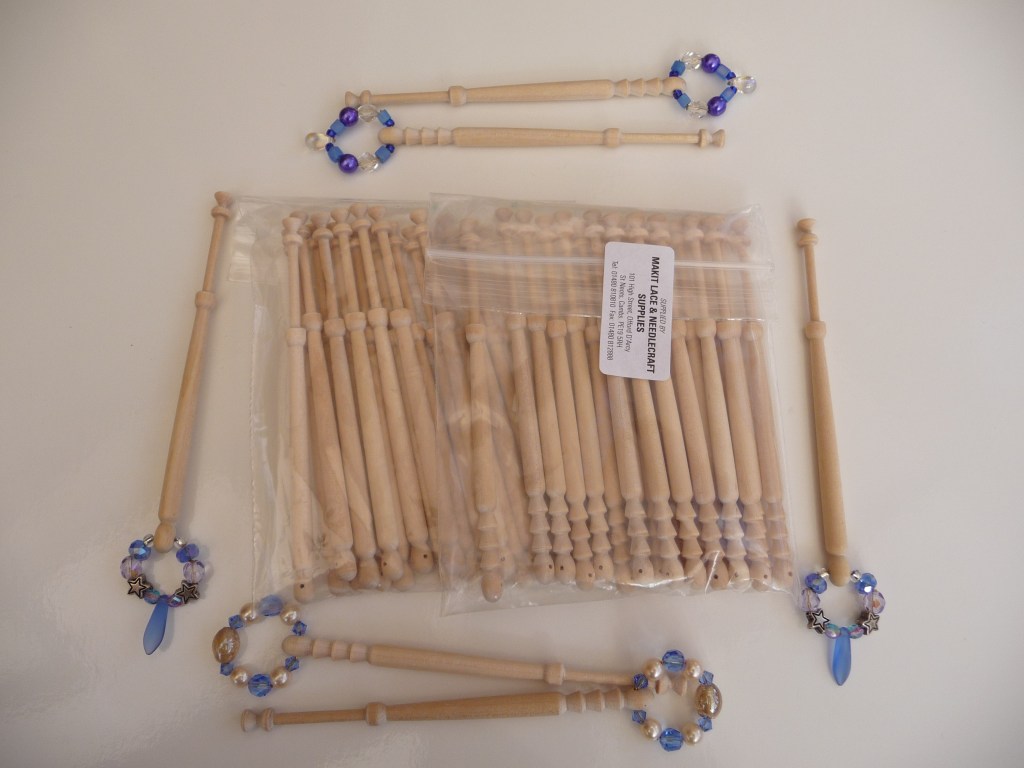 Having had a go once at painting bobbins I can completely appreciate Sarah’s talents, and those of anyone who paints bobbins. I took part in a bobbin painting workshop with Jacqui Southworth of Larkholme Lace a year or so ago, and whilst my creations are very, very far from being as good as hers, you may be more skilled in this area and get better results. The ones we did in the workshop were these rainbow ones: