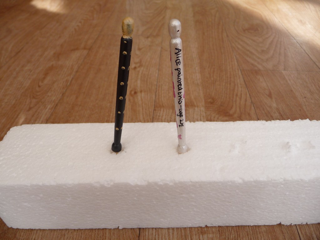 - Put the bobbin upside down in the polystyrene until it has dried (it shouldn’t take too long)