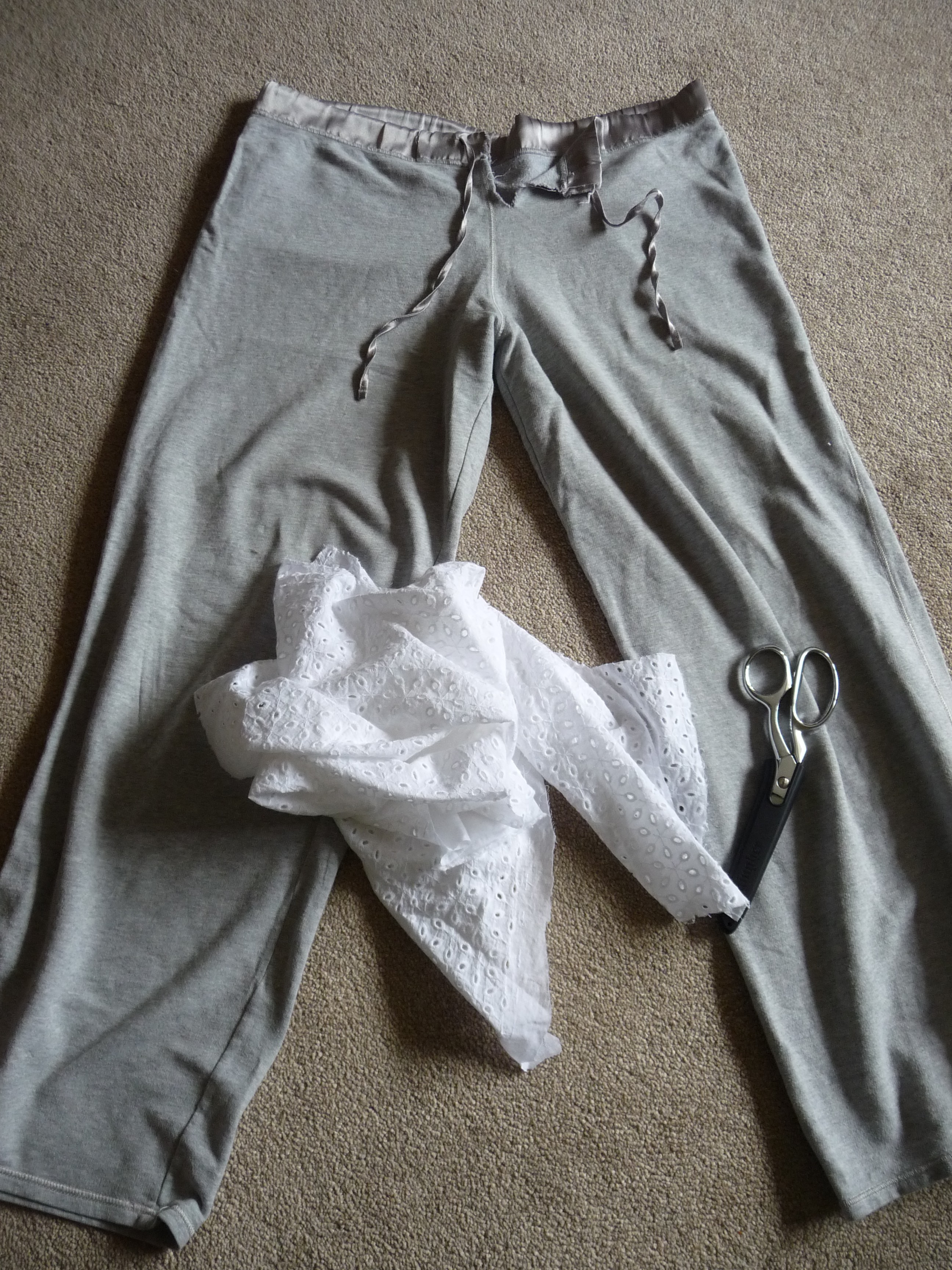 It was refashioned from an old pair of my PJs and some leftover eyelet fabric and as I already had the pattern this was a completely free project- gotta love that!