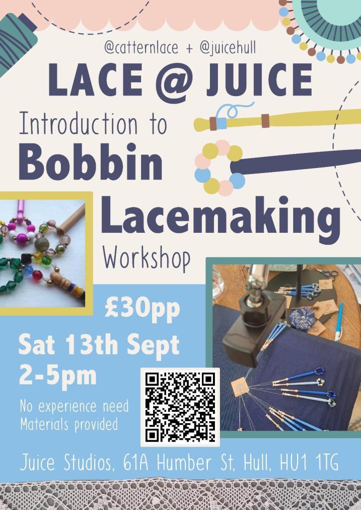 Bookings via Eventbrite: Lace @ Juice Registration, Sat 13 Sep 2025 at 14:00 | Eventbrite or via the link on the Juice Studios workshop pages. They’ve got loads of exciting stuff coming up so check out their other workshops whilst you’re there!