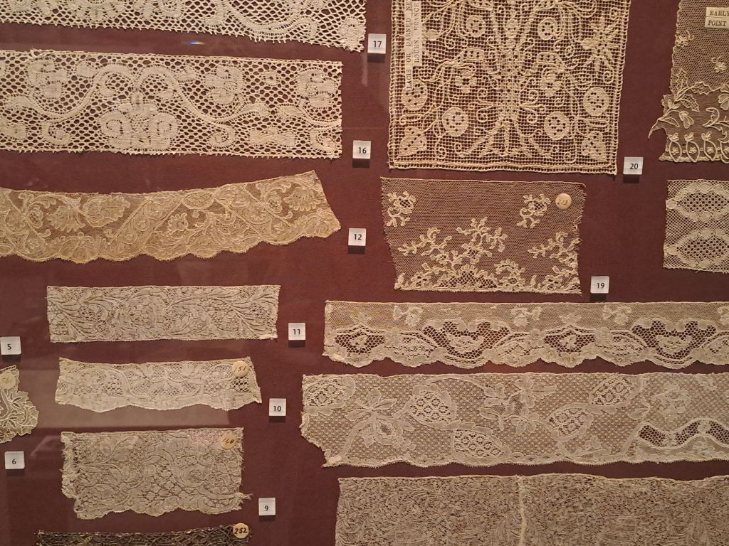 We also visited the Royal Albert Memorial Museum in Exeter which had a collection of lace on display, including sampler strips of numerous different types.