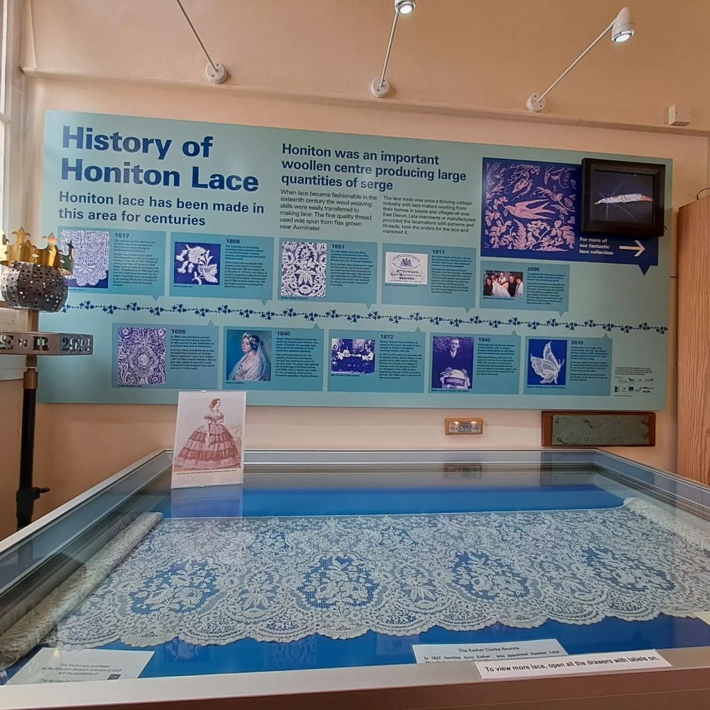 The museum houses- amongst a treasure trove of others objects- a collection of Honiton Lace, in a dedicated room.