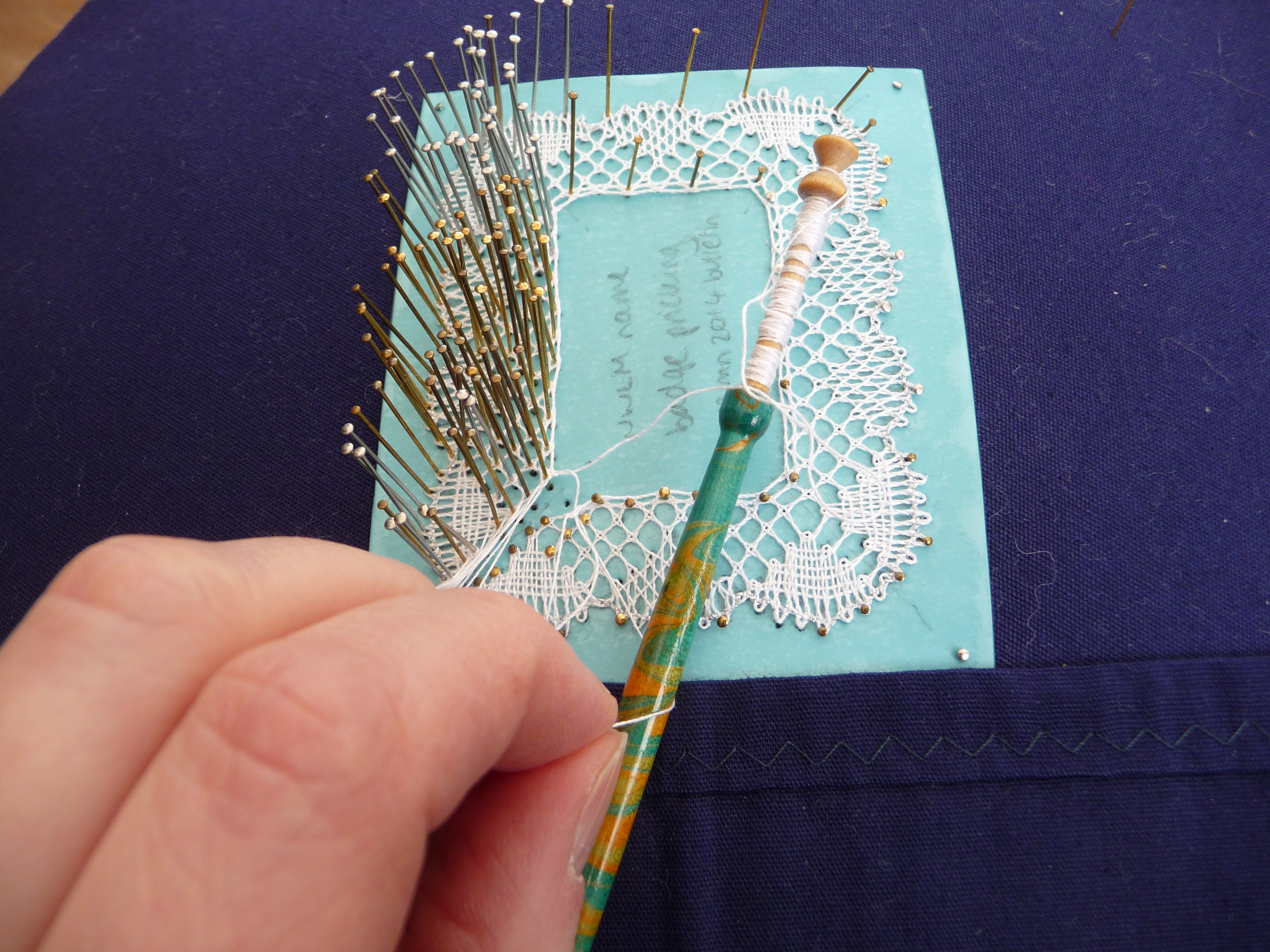The main methods of joining lace are by using a tiny (0.6mm) crochet hook, a lazy Susan, a needle pin or the use of ‘magic threads’. The methods I tend to use are a crochet hook for Torchon, Beds and Bucks Point, and a needle pin for my Honiton. This tutorial focuses on using a crochet hook.