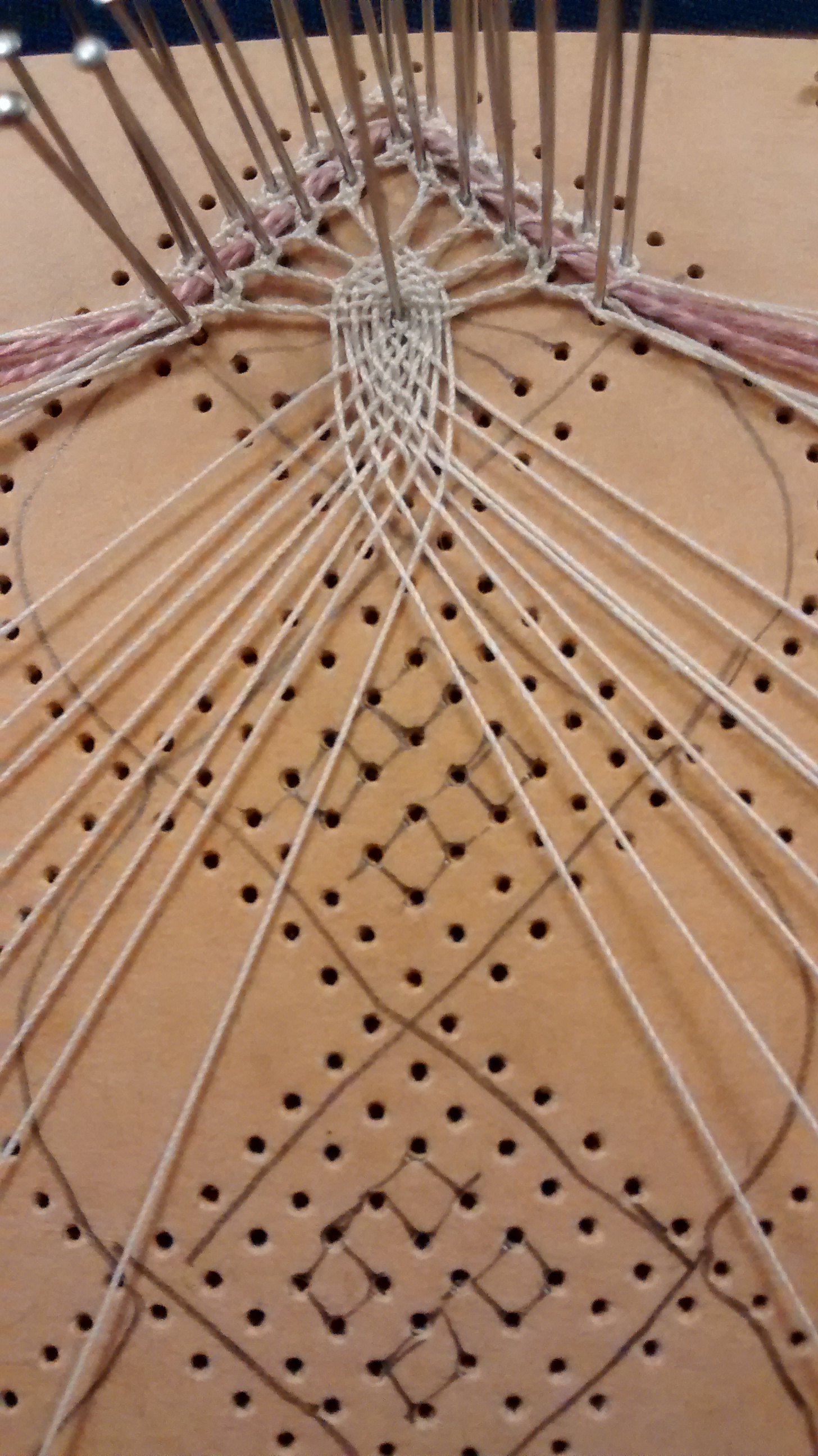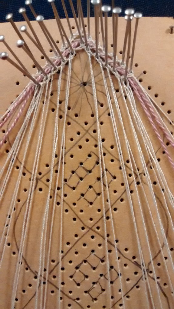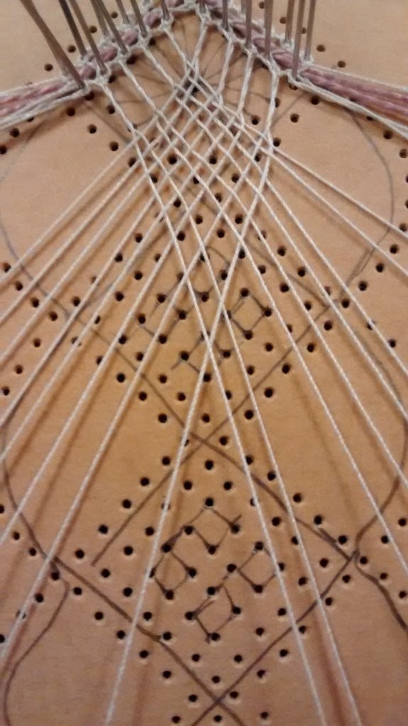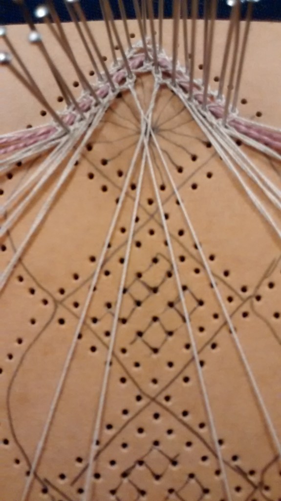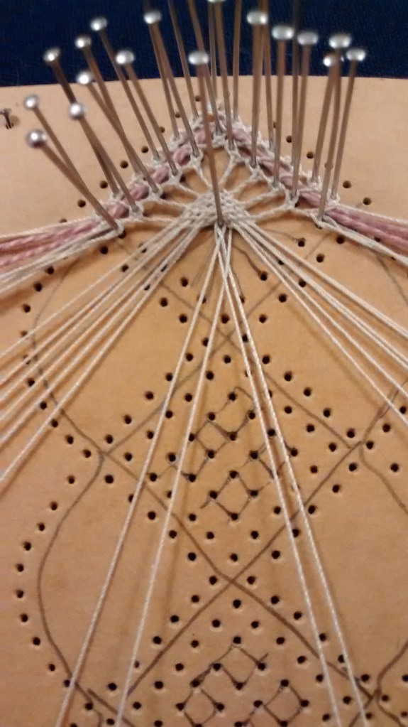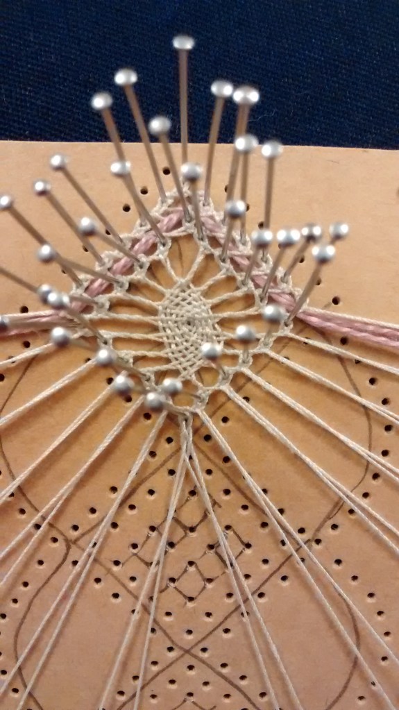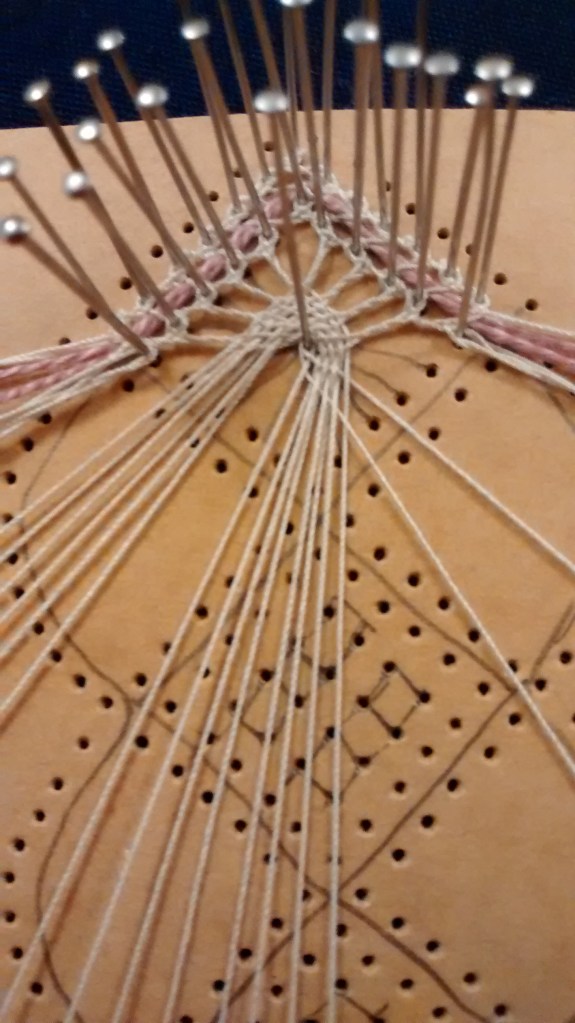 Once you’ve mastered whole stitch and half stitch (see here for tutorials) one of the next techniques you’re likely to come across in Torchon lace are Spiders. They are so called because of their appearance but they don’t need to have eight ‘legs’- they can be made with anything from 4 upwards.